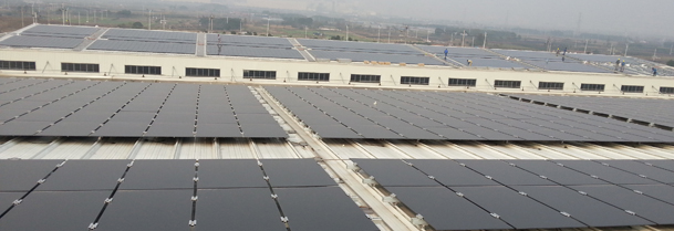 該光伏電站坐落于寧波市北侖區(qū)霞浦的寧波興港貨柜有限公司彩鋼瓦屋頂上,屋頂面積14000平米,裝機(jī)容量為1MW,預(yù)計(jì)年發(fā)電量為100萬kWh,共安裝了一萬兩千余塊由龍焱能源生產(chǎn)的0.72㎡ ASP-S1-80碲化鎘(CdTe)薄膜太陽能組件。由于碲化鎘薄膜太陽能電池在弱光性、溫度系數(shù)、抗腐蝕能力等方面具有獨(dú)特優(yōu)勢,該項(xiàng)目克服了當(dāng)?shù)貪駶櫟臍夂蛞约澳媳毕蛉诵挝蓓斀Y(jié)構(gòu)對發(fā)電量的影響等難題。同時(shí)完全國產(chǎn)化組件也讓電站建設(shè)成本大大降低,上述特點(diǎn)為廠區(qū)享受經(jīng)濟(jì)實(shí)惠、綠色環(huán)保的電力提供了保障。