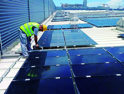 ▲在“杜蘇芮”來臨之前,運維部的同事們正在進行光伏電站的電氣設(shè)備檢查、支架固定檢查以及雜物清理等工作
